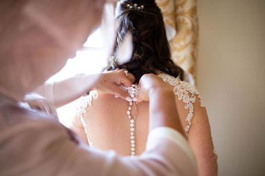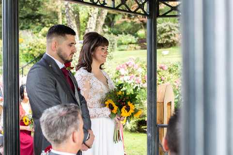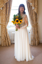 Hannah and her bridesmaids each took their turn with hair and makeup, supplied by Beauty by Sophie Jade and Hair by Franki. After which the bride’s mother assisted with the wedding dress - Hannah wore a stunning gown, with delicate lace details and a button down back. The 4 bridesmaids wore a selection of maroon ruched dresses, juxtaposing their yellow bouquets. Sunflowers were the flower of choice on this day, Hannah's bouquet also having red berries tying the colour scheme together perfectly.