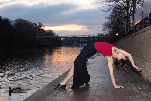 Through out this series I have used natural sun light to create a warm natural glow to the images. I’ve used the sun behind the model creating sun glares and silhouettes, and the sun positioned in front to create direct lighting upon the dancer.